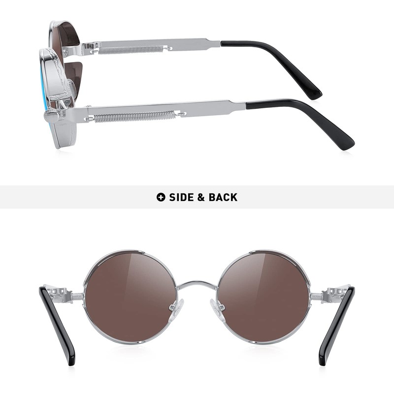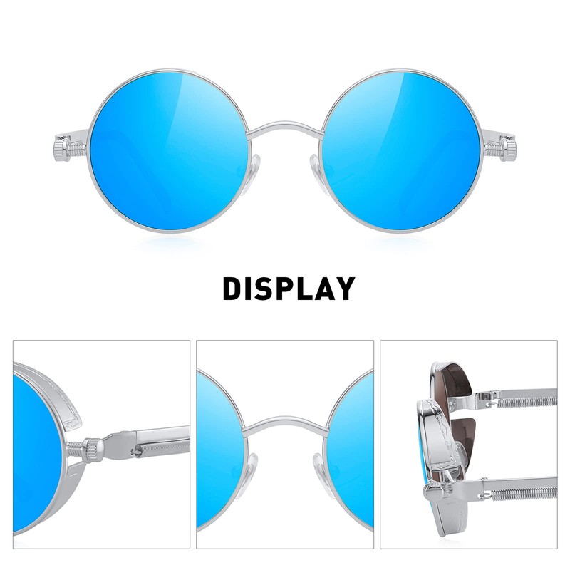 MERRY'S Gothic Steampunk Sunglasses for Women Men Round Lens Metal Frame S567(Silver&Blue, 46)