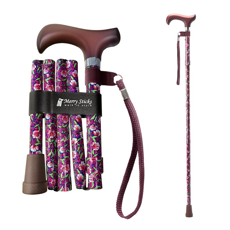 Merry Sticks Lightweight Foldable Walking Canes for Women and Men, Adjustable & Collapsible Walking Stick for Seniors, Balancing Mobility Aids, Ergonomic Handle & Wrist Strap - Purple Morris