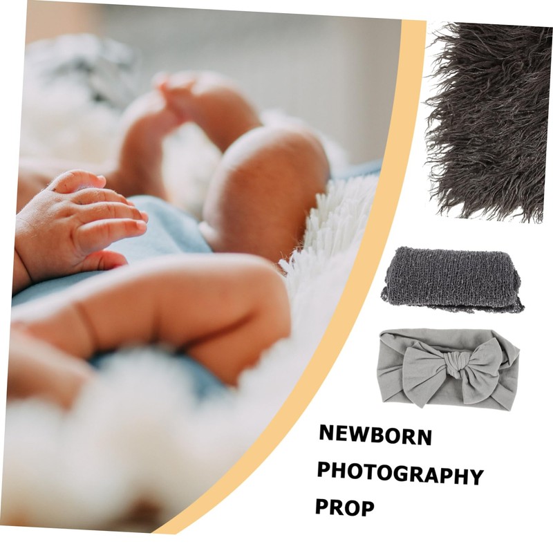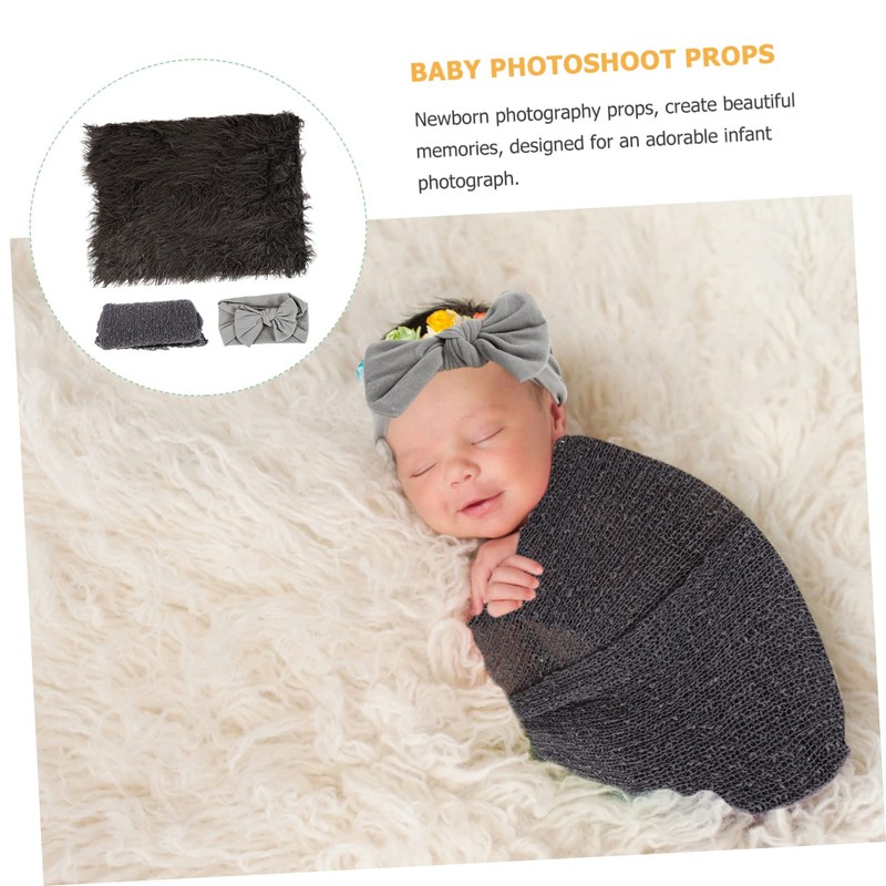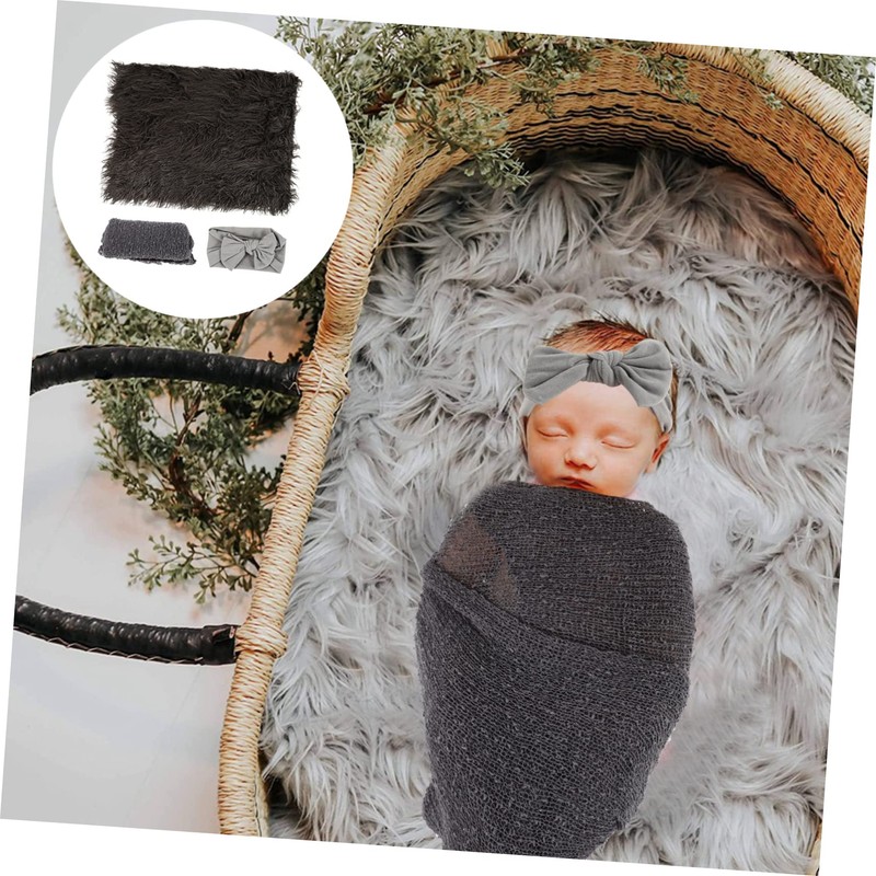 MERRYHAPY 1 Set Newborn Photography Props Set Swaddle Wrap Headband and Blanket for Adorable Photos Deep Grey for Photography and Special Memories