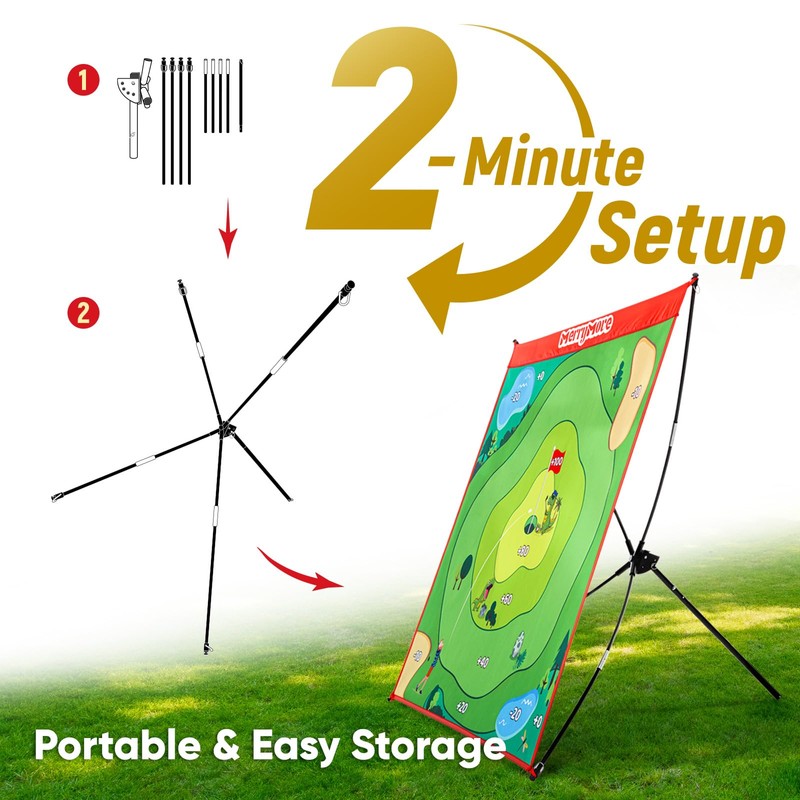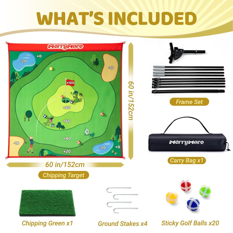 - Tailgate-Tested Golf Chipping Game- Built for: Camping trips, beach days, and pre-game parking lot hangs.Toss this portable golf training aid in your trunk for instant entertainment. Stakes stabilize it on grass for competitive golf games, while 20 sticky balls survive sand/water. Be the MVP who turns any gathering into a mini tournament!