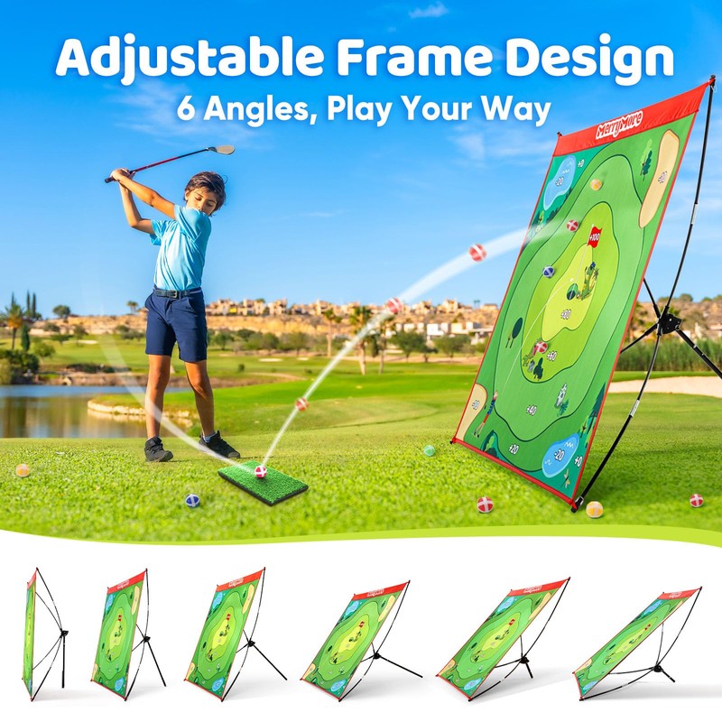 - 6-Way Adjustable Golf Chipping Target- Perfect for: Golfers craving real-course practice and families wanting competitive fun. Our upgraded adjustable golf practice mat offers 6 angles to master every chip shot—from flop shots to bump-and-runs. The golf chipping game mode turns practice into thrilling "last-ball-sticking" battles. Safe for backyards, basements, or even office break rooms!