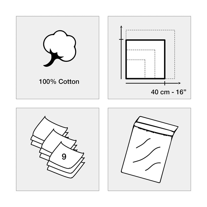 - Large size 40 cm ♦ The dimensions of our numerous references of handkerchiefs range from 23 cm to 50 cm side. The size of Arthur's handkerchiefs meets the standard of men's handkerchiefs.