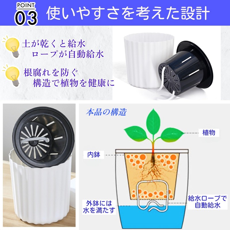 - Automatic Water Supply Convenience: This planter is equipped with an automatic water supply system using a water supply rope. When the soil is dry, it will automatically supply water to deliver the water needed to the plants. Even on a busy day, the plant will provide a healthy growing environment and reduce the hassle. No need to worry about taking care of your plants while traveling