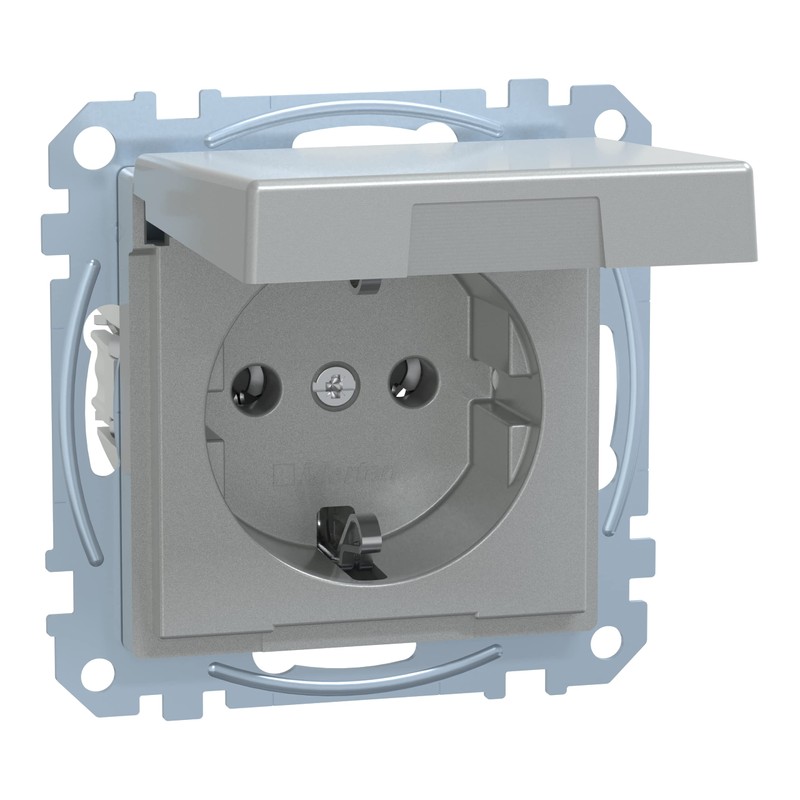 Merten MEG2311-0460 SCHUKO socket-outlet with hinged lid, plug-in terminals, aluminium, System M