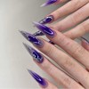 MERVF Long Stiletto Press on Nails Fake Nails Purple Aura Glue on Nails with ...