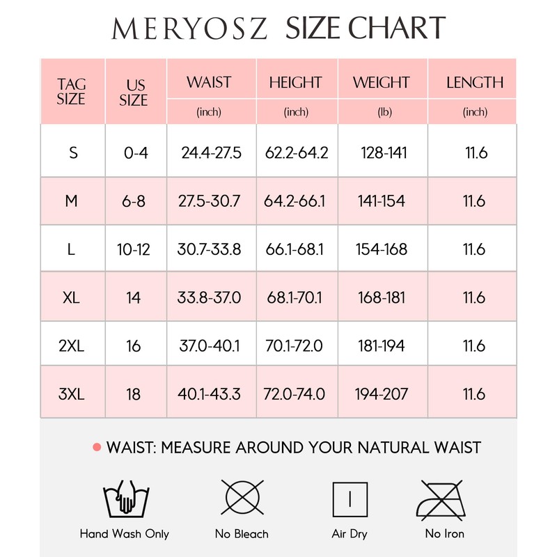 - Warm Tips from MERYOSZ Size: The waistline for MERYOSZ girdles for women body shaper extra firm tummy control: S (23.2-26.3 inch), M (26.3-29.5 inch), L (29.5-32.6 inch), XL (32.6-35.8 inch), 2XL (35.8-38.9 inch), 3XL (38.9-41.7 inch). To fit well, please follow our size chart and measure your waist. If you are in between sizes, please order one size up.