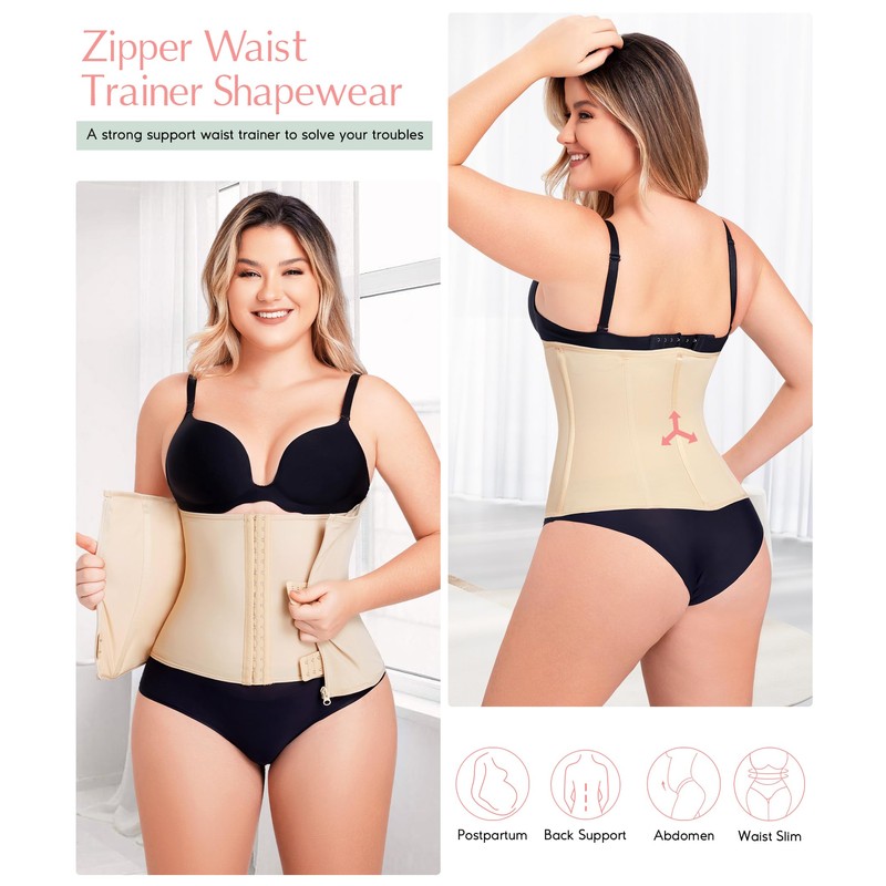 - BODY SLIMMING CORSET WAIST TRAINER: Our tummy control shapewear can hold your belly, reduce waistline, create instant slim curve to achieving the hourglass figure. Inner with adjustable 3 rows of hook and eye closure, the waist trainer for women lower belly fat is widely enough to wrap the whole abdominal area in different stage effectively. Outer plus with durable zipper, double control to flatten and tighten the tummy, giving you immediate slimming effect to enhance your natural curves.