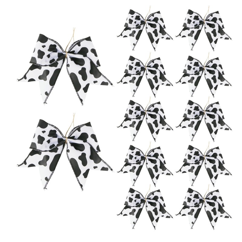 Meseey Highland Cow Print Wire Ribbon Bows, 12 Pieces, Farmhouse Style, DIY Wreath Making and Party Decor (bw Cow)