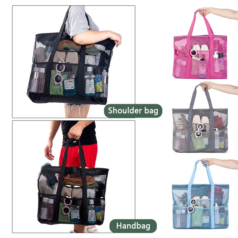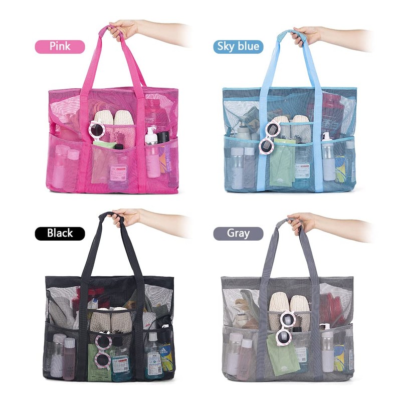 Mesh Beach Bag Large Bag Hanging Toiletry Bag College Dorm Essentials Bag Portable Wash Bag Quick Dry Cosmetic Bag Organizer for Beach Pool Trip Camping Shopping Travelling