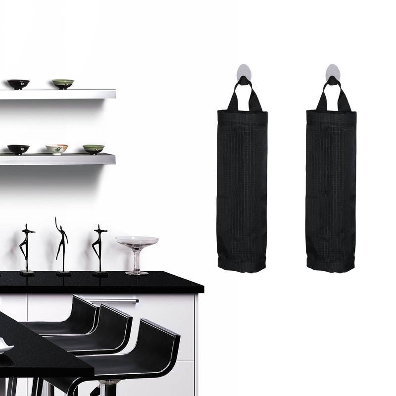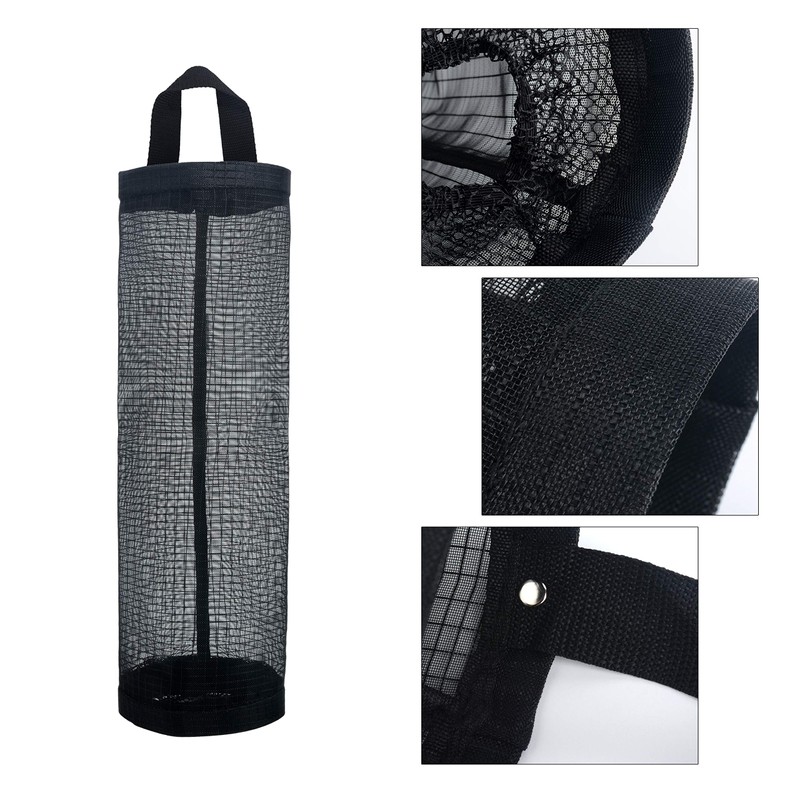 Mesh Garbage Bag Sulimy Plastic Bag Holder Dispensers 2pcs Folding Hanging Storage Bag Trash bags Holder Organizer Recycling Grocery Pocket Containers with 2 Hooks for Home and Kitchen Black