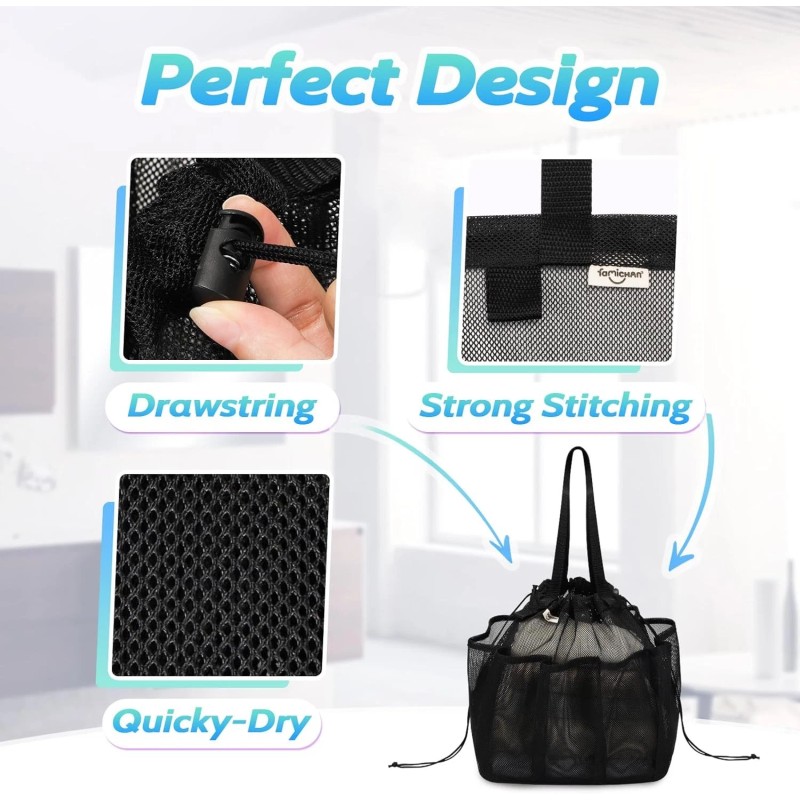 - 【Premium Quality & Durability】Crafted with high-quality mesh and meticulous stitching, this bathroom caddy is built to withstand up to 60 pounds, ensuring long-lasting durability for years of reliable use.
