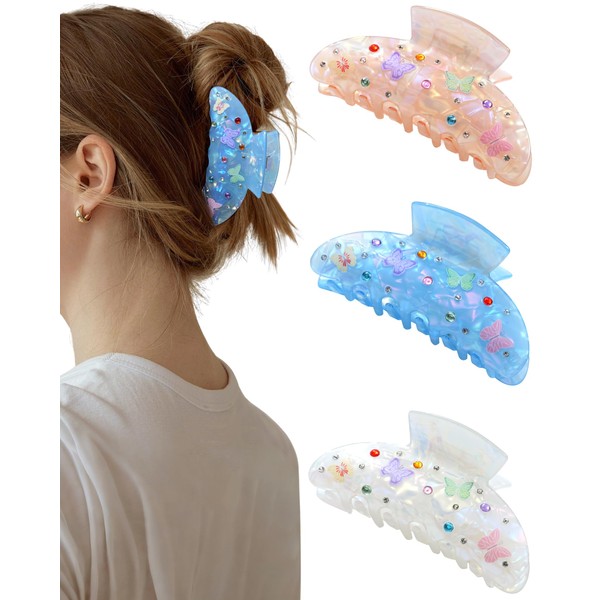 - Package Includes: You will receive 3-packs of cute bow print claw clips with colored zircon in different colors! Sufficient quantity, great value for money, suitable for girls and women. Easily match with various clothes, beautiful and elegant, it is a versatile fashion must-have