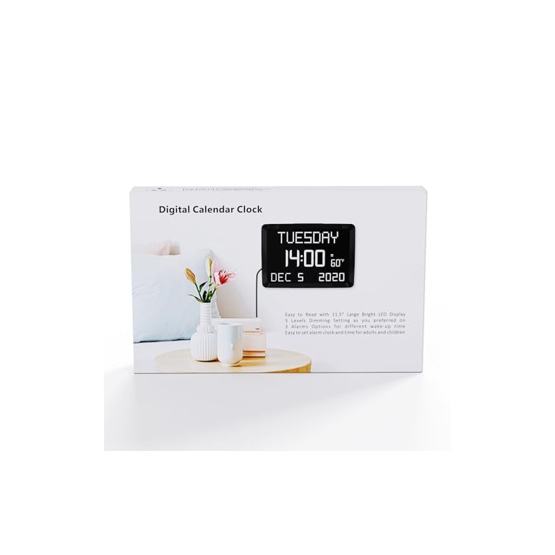 - You Can Put This Digital Calendar Clock Anywhere: This large digital clock comes with a stand, easy to install with only one step, convenient to put on the table, be your desk clock or bedside clock. Want to hang it up and make it a wall clock? Remove the stand any time if you need and you can mount it in your living room, bedroom or kitchen, convenient for you to choose