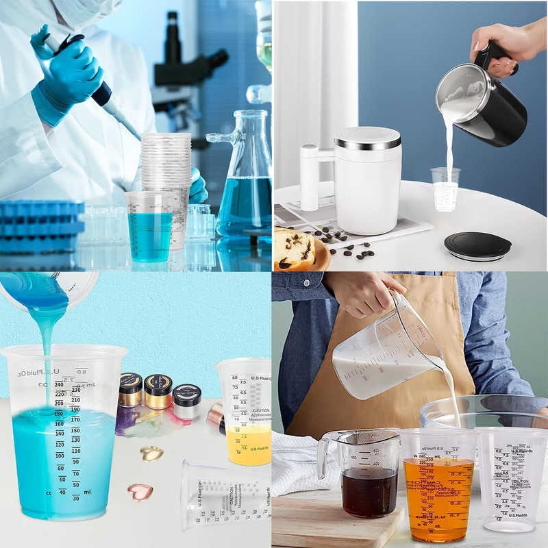 Messbecher Epoxidharz,Lackmischbecher, Rührbecher,Wiederverwendbar,Messbecher zum Mischen von Flüssigkeiten, Harzen, Pigmenten,mit Skala,240ML, 50 Stück