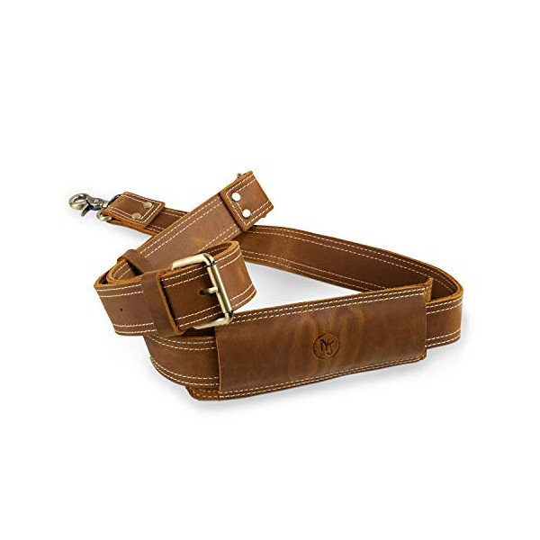 Messenger Bag Strap Replacement | Quality GENUINE COWHIDE Leather Adjustable Shoulder Strap | For Messenger, Laptop, Camera, Travel Bags and More (Light Brown)