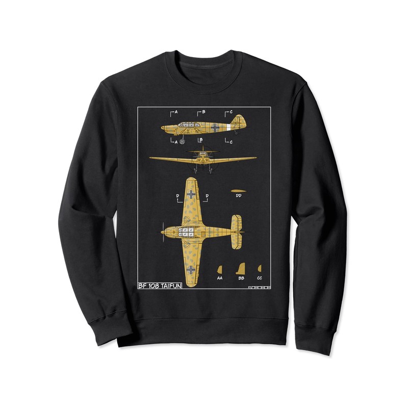 Messerschmitt Bf 108 Taifun WW2 German Plane Diagram Sweatshirt