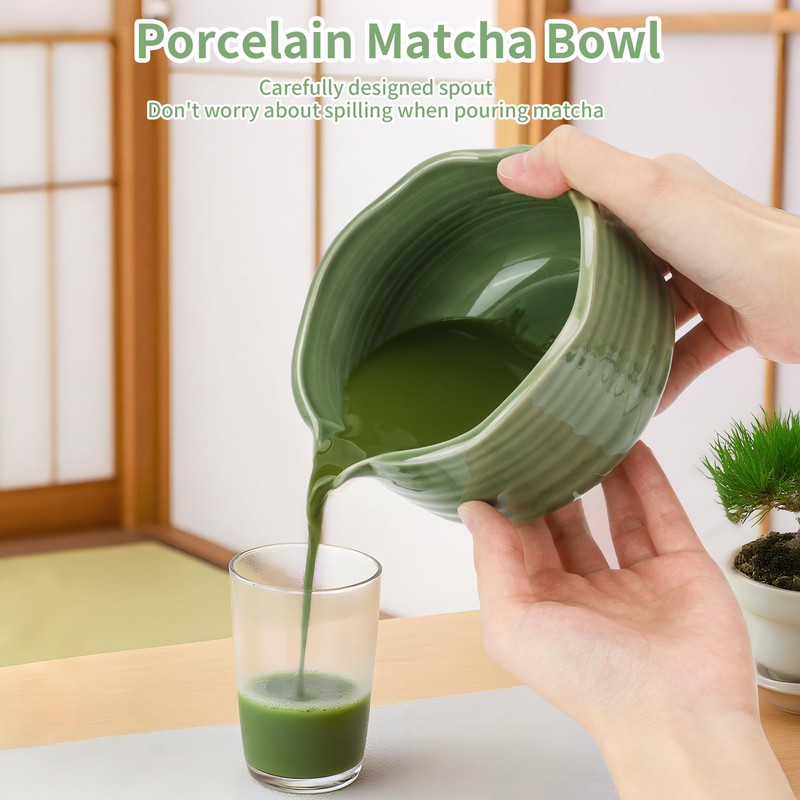 MestectPET Matcha Bowl with Spout, Matcha Stirrer and Stand, Matcha Spoon (Matcha Green) Pack of 5