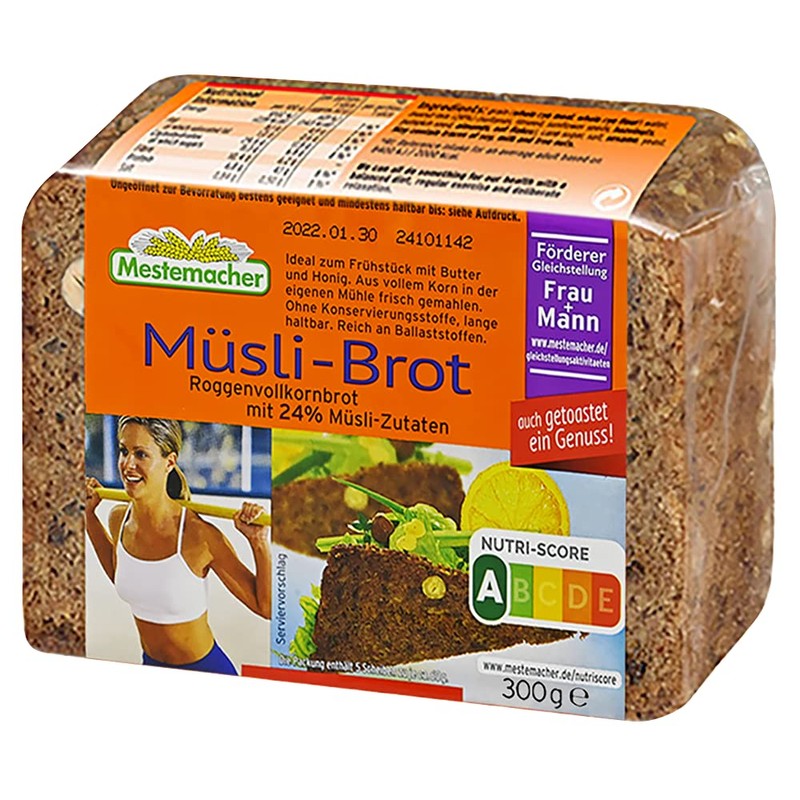 Mestemacher(メステマッハー) ミューズリー ブロート(ライ麦&レーズンナッツブレッド) 300g レーズン、亜麻仁、ナッツがたっぷりでライ麦パン初心者にも