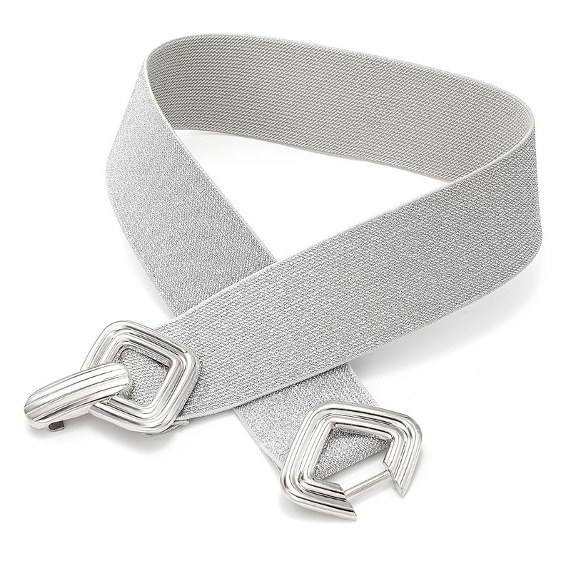 MESU Women Wide Stretchy Belts Waist Elastic Waistband for Dresses Silver Band Silver Buckle 85CM