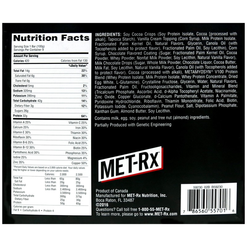- MET-Rx Big 100 Colossal Meal Replacement Bar Super Cookie Crunch 9/3.52 oz (100 grams) Bar(S)