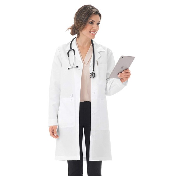 - BEST FIT LAB COAT | Our 37” women's lab coat is the perfect fusion of fashion and function with a 4 button closure, notched lapel, and a flattering silhouette that exudes confidence and poise.