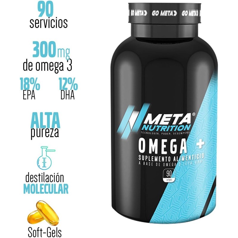 Eleva tu bienestar con Meta Nutrition Omega 3, una fórmula avanzada de ácidos grasos esenciales cuidadosamente purificada para ofrecerte máxima pureza, potencia y seguridad. Ideal para quienes buscan mejorar su salud cardiovascular, cerebral y articular con un suplemento de calidad superior.