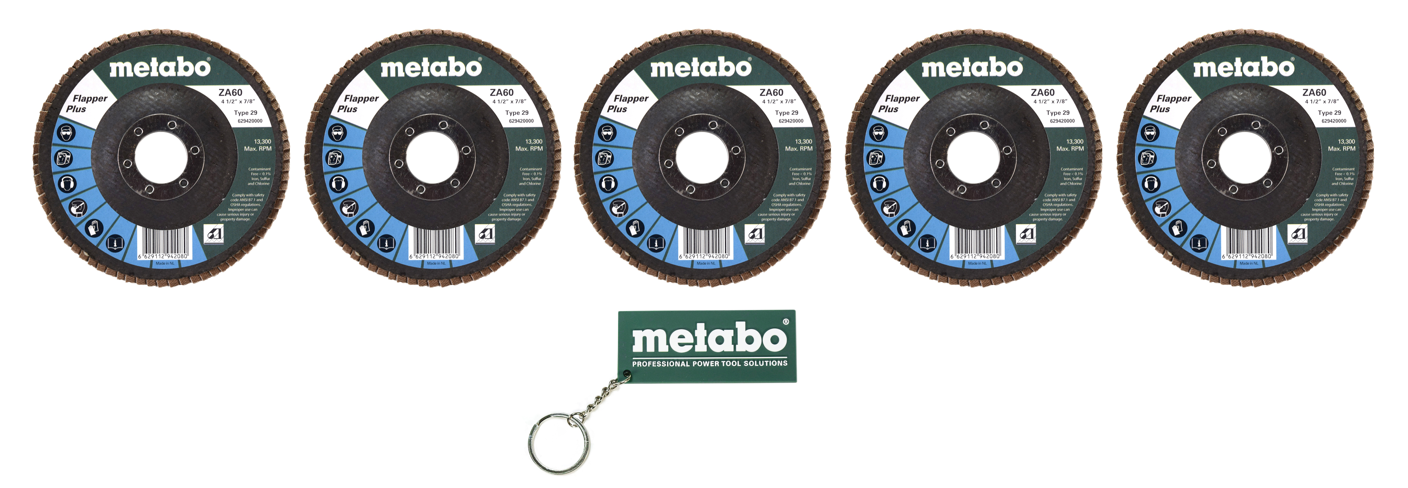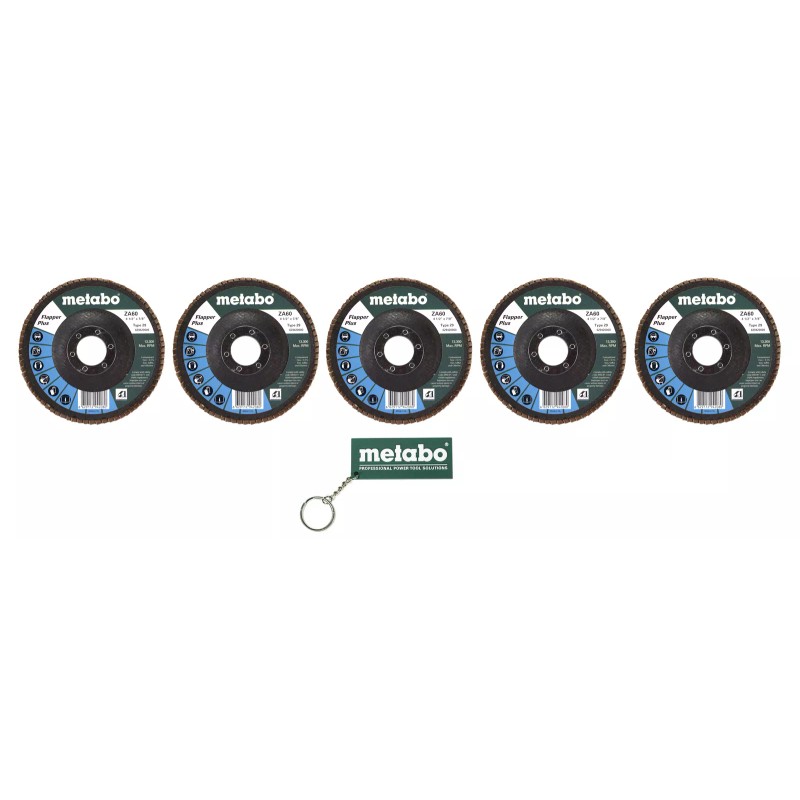 Metabo 629420000 4-1/2" Flapper Plus 60 7/8 T29 Fiberglass Flap Disc 5 Pack