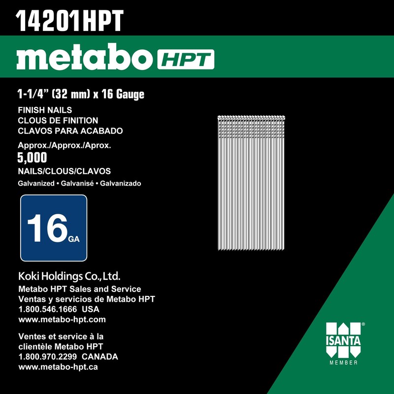 Metabo HPT 14201HPT 16 Gauge Finish Nails 1-1/4" x 16GA EG 5000 Count