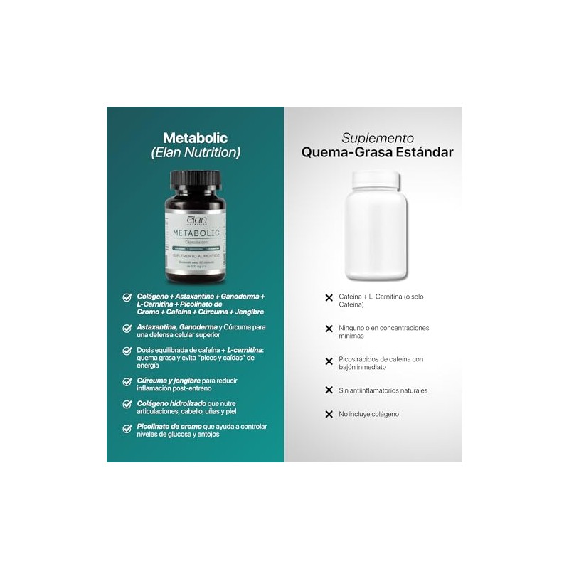 🌟 ⭐ Metabolic - Suplemento Alimenticio - Con Colágeno, Astaxantina, Ganoderma y L-Carnitina - 60 Cápsulas de 500 mg ⭐ 🌟