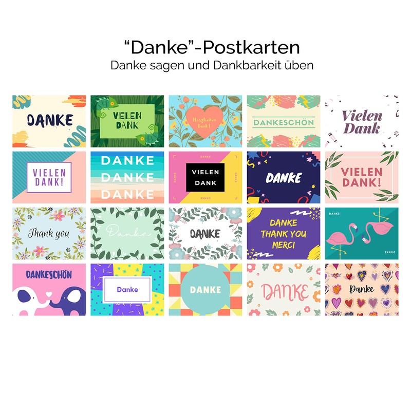 metaFox "Danke" Postcards, 20 Colourful Thank You Cards - Say Thank You When You Are Grateful, The Perfect Card Set for a 20-Day Gratitude Challenge