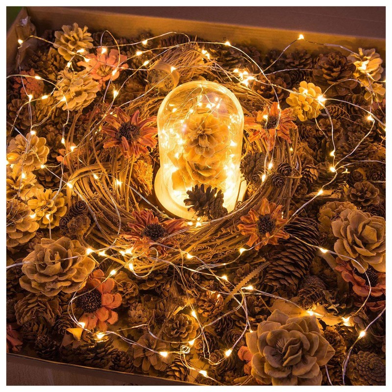 - đă32.8FT/10M WITH 100 LEDs TWINKLE LIGHTSă Warm white fairy lights, 33ft/10m extra thin string with bright high quality 100pcs micro LED starry lights, 4in/10cm cable between the lights, 1ft/30cm transparent protective cable between the battery box (3.1â x 1.9â x 0.7â) and the first LED. Easy control with a CR2025 battery operated remote (3.35âx1.57âx0.19â).