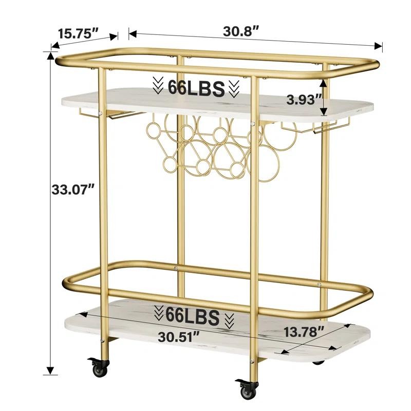 - Reliable stability quality particleboard and metal frame combine to cast this bar trolley with a stable structure and good load-bearing ability. The top and bottom shelves of this wine rack can bear up to 66lb/30kg.