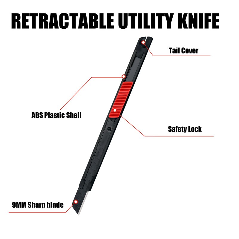 Metal Box Cutter Body, with Safety Lock (Black White)