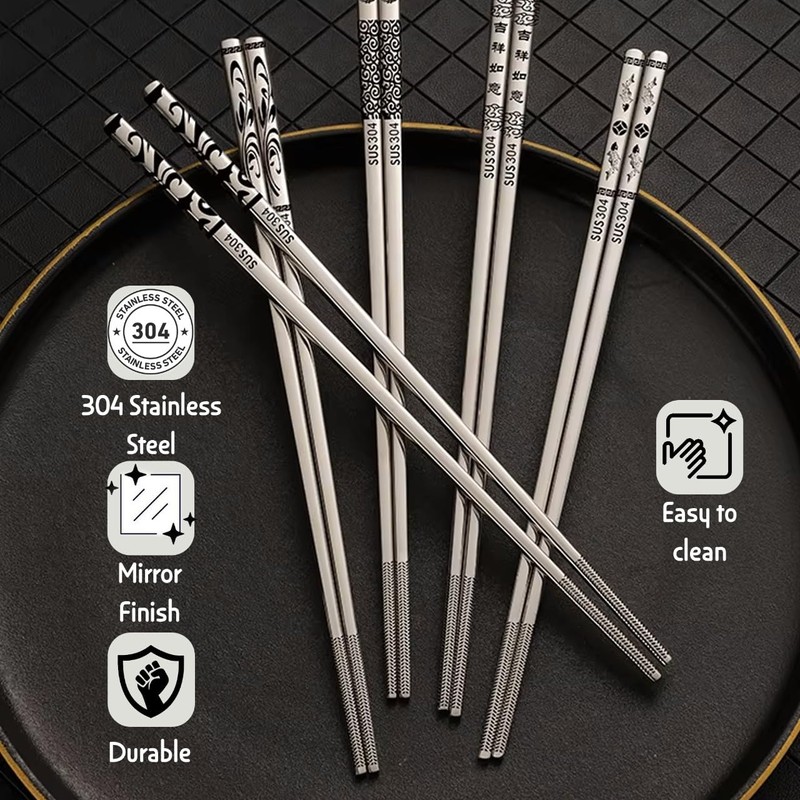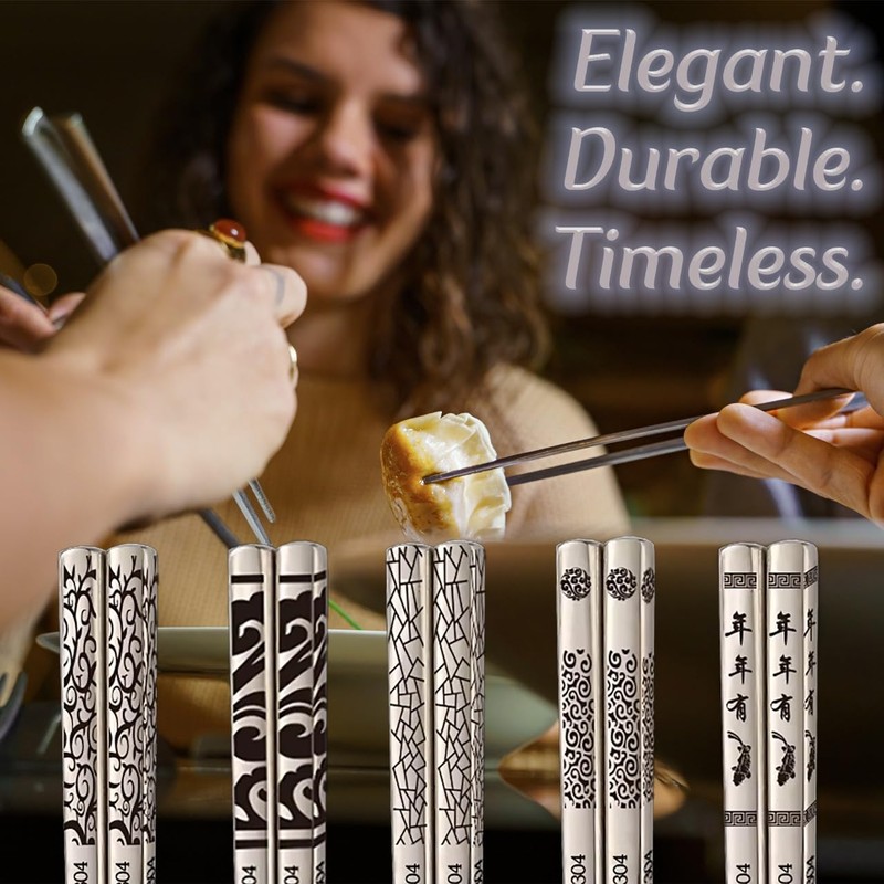 Made from food-grade 304 stainless steel, our chopsticks are resistant to rust, corrosion, and stains, ensuring they last for many years.