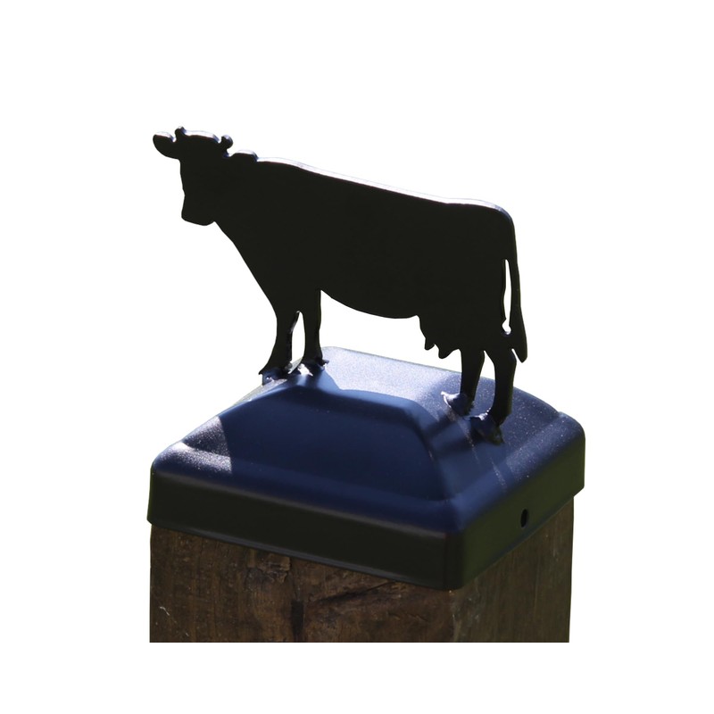 Metal Cow Post Cap for 4x4 Nominal Post (for Posts 3.5in x 3.5in or Smaller-Please Measure Post), Madison Iron and Wood (Gloss Black) (1 Each)