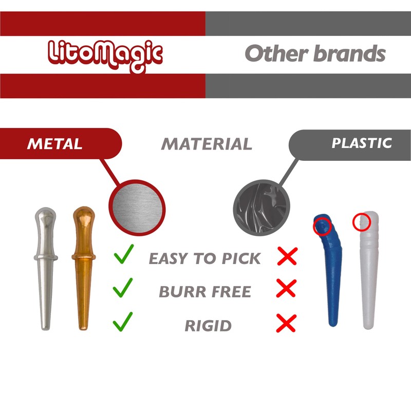 Metal Cribbage Pegs LitoMagic for Cribbage Board Game. Work with Regular Peg Board 1/8 Hole Size Like Bicycle Board Games. Pack of 16 Crib pegs.
