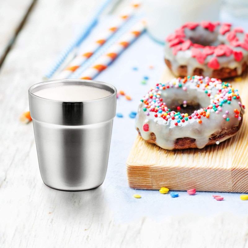 Metal Cups for Kids Baby, E-far 6 Ounce Stainless Steel Insulated Cups for Toddler Children, Training & Transition, Double Wall & Shatterproof, Mirror Polished & Dishwasher Safe - 2 Pack