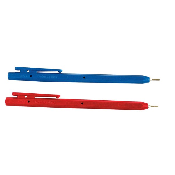 - Price For: Each Item: Metal Detectable Stick Pen NSF Certified: No Ink Color: Blue Body Color: Red Features: Stick Ped with Clip Country of Origin (subject to change): United States