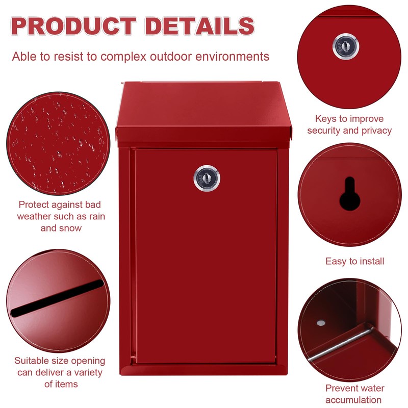 - Multiple uses: It has multiple functions and can be used as a donation box, collection box, mailbox, opinion box, ballot box, key delivery box, cash box, etc., convenient for delivering voting papers, opinion letters, coins, checks, mail, keys etc., suitable for all scenarios such as offices, homes, outdoors, farms, roadside stalls, etc
