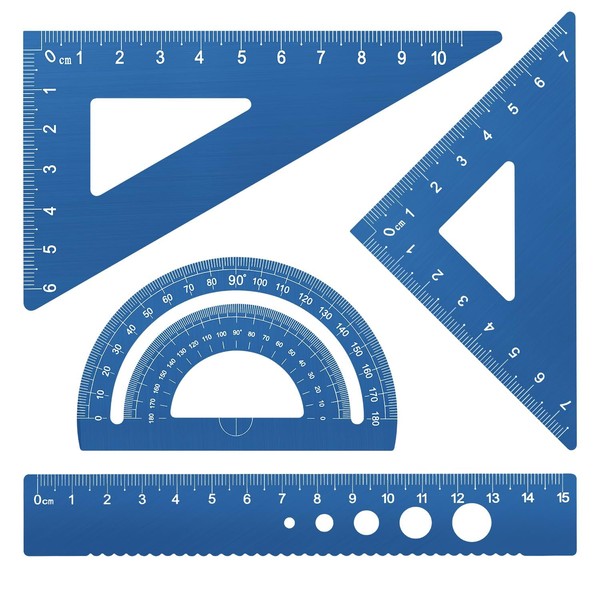 Metal Drafting Ruler, Triangular Ruler Set, 4 Pieces Aluminum Alloy Ruler, Geometric Protractor for Student,Draftsman, Engineers, School Office Supplies(Blue)