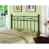 This metal headboard will give your bed a transitional feel. Clean lines combine with curved ones at the top with knob attachments that evoke rustic charm. Posts are topped by simple crown fixtures. The straight metal construction is durable and wrapped in bronze. Headboard fits either full or queen frame and bed sizes.