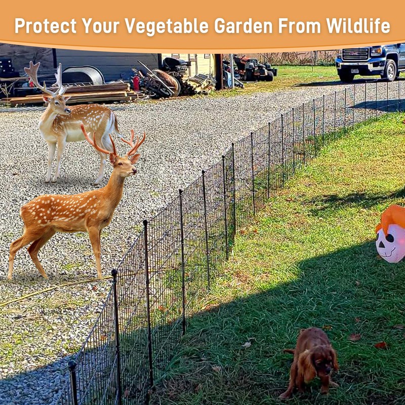 - SECURE & STURDY ANIMAL BARRIER>>The metal and spear-top pickets provide a strong physical barrier to deter intruders and keep pets like dogs and rabbits contained. Built to withstand harsh weather conditions, this fence ensures your garden remains protected year-round.