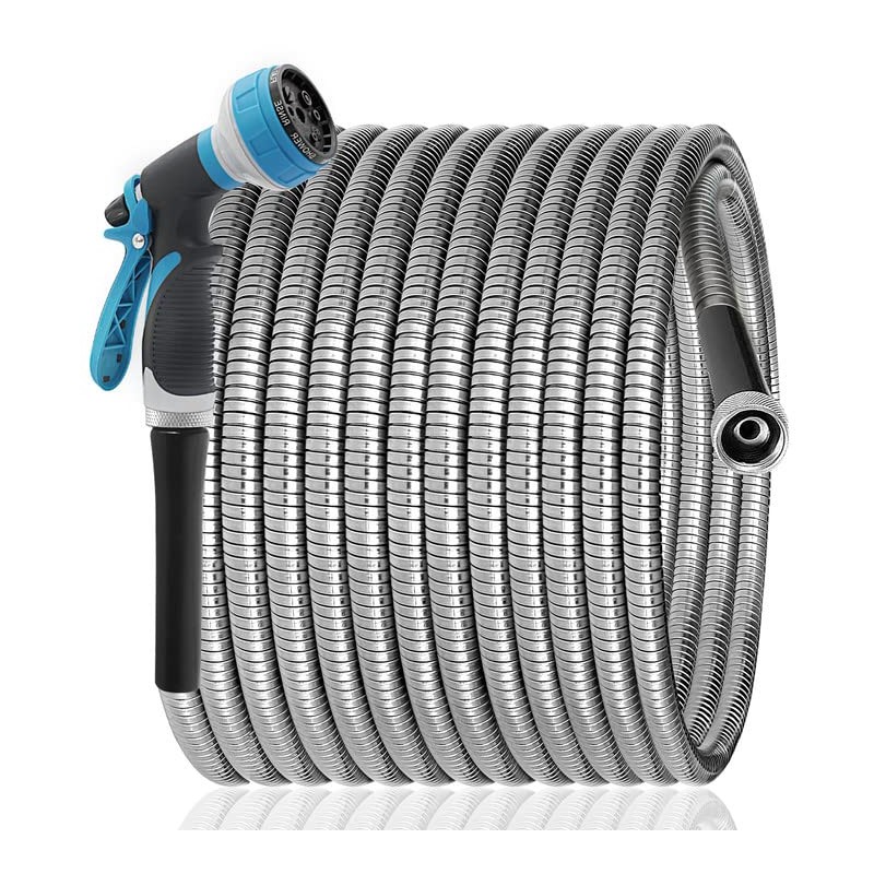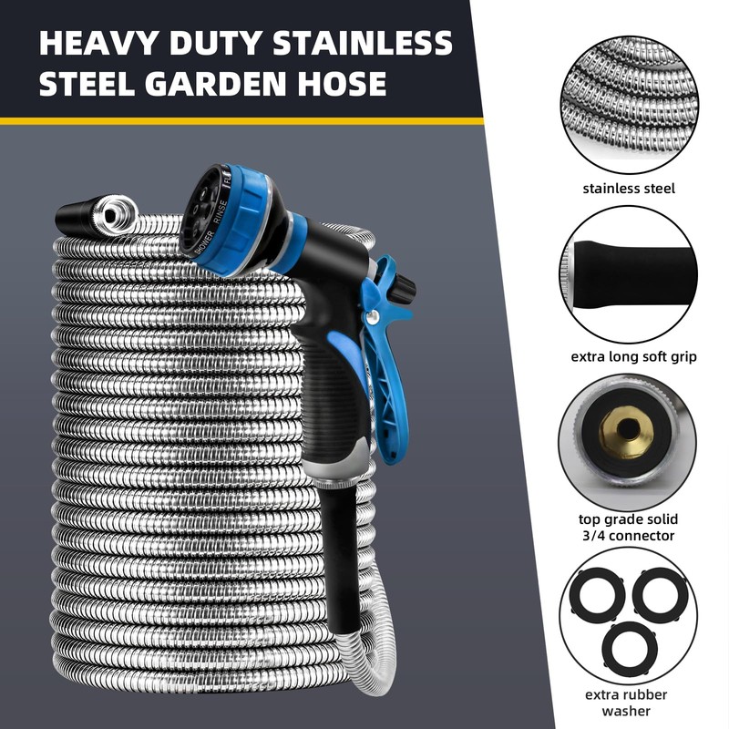 - Without Kinks and Tangles:The stainless steel garden hose body is wrapped with a stainless steel protective layer, providing consistent, stable, and high pressure water output. The anti tangle design prevents twisting, tangling, and knotting