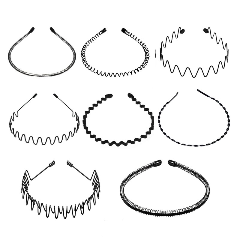 Metal Hair bands for men, men wavy headband8 Pcs Spiral Non-Slip Multi-styleUnisex hair band Accessories for men and women