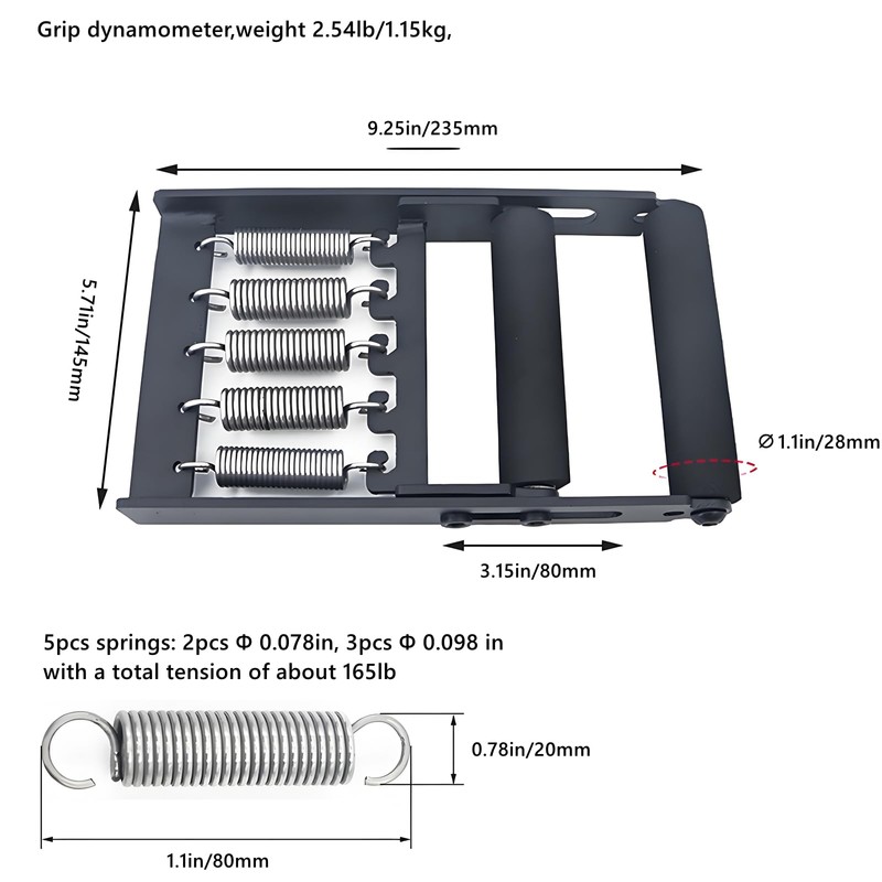 - Adjustable Resistance from 30lb to 165lb:Customize your training by adding/removing springs (5 included). Perfect for beginners to pros aiming to build finger, wrist, and forearm strength.