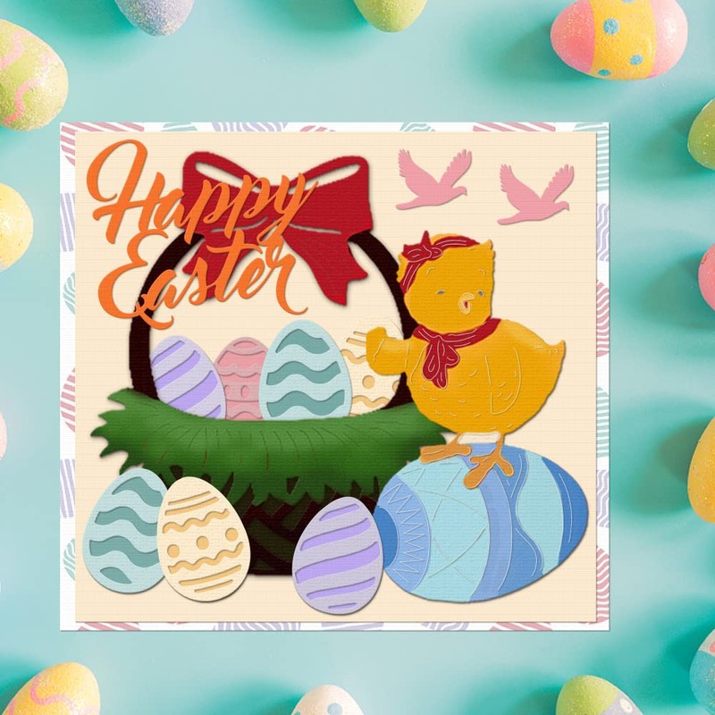 - 1.Style and Quantity:You will get 1 pieces of easter eggs chick born metal cutting dies basket die cuts.