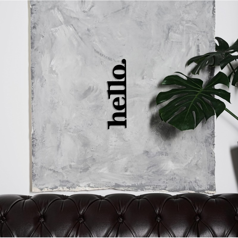 Metal Hello Sign, Welcome Outdoor Metal Wall Decor, Home Front Door Entryway Vertical Wall Decoration, Black Metal Hello Sign (15x4 inches)