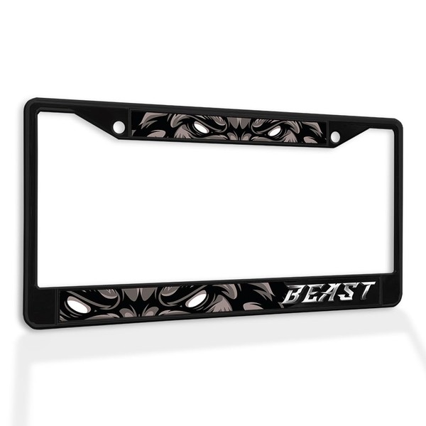 Metal Insert License Plate Frame A Beast Weatherproof Car Accessories Black 2 Holes Solid Insert
