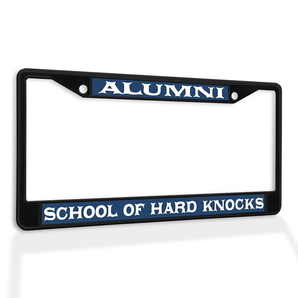 Metal Insert License Plate Frame Alumni School of Hard Knocks Funny Weatherproof Car Accessories Black 2 Holes Solid Insert