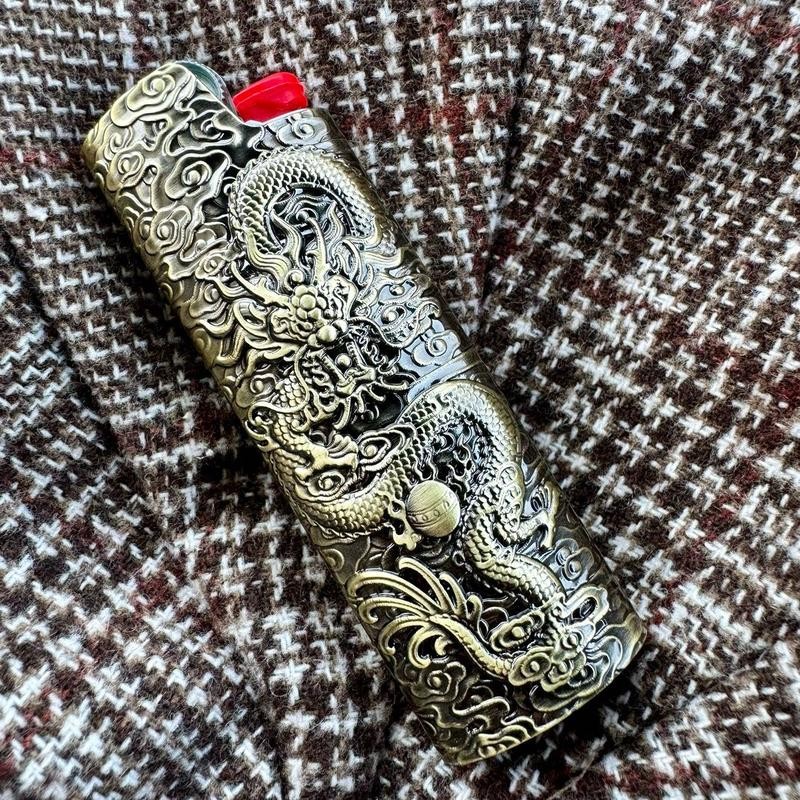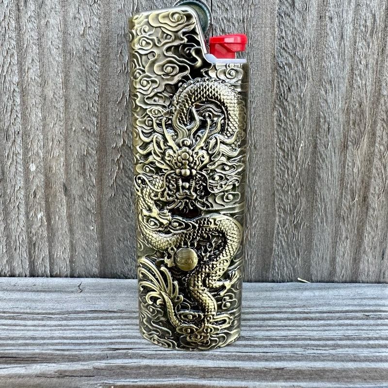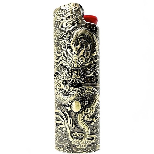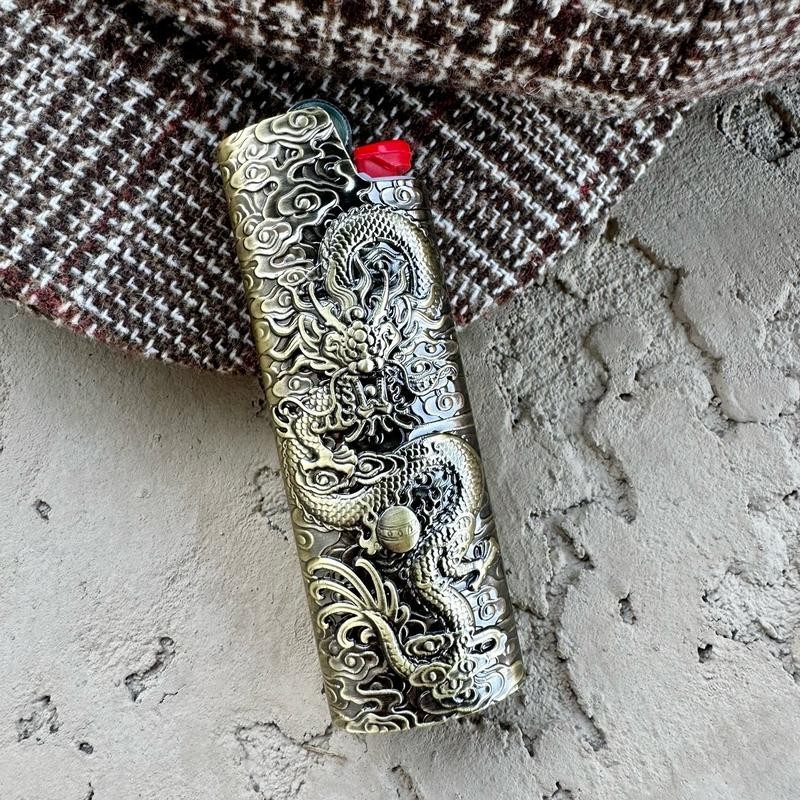 Metal Lighter Case Cover Lighter Pouch Fits Bic Lighter Standard Size J6 Dragon Design Metallic